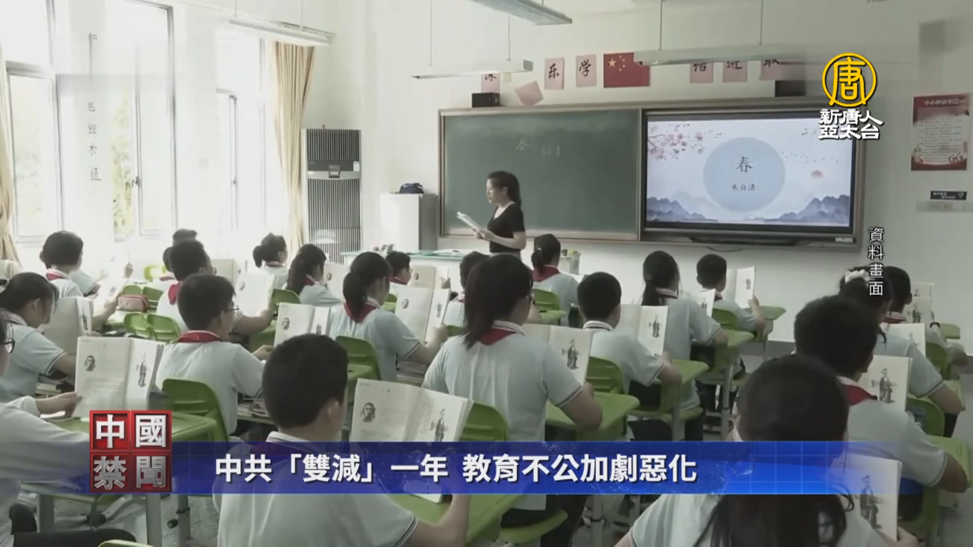 【新唐人亞太台 2022 年 07 月 30 日訊】中共出臺的「雙減」政策一年來,催生出龐大的教培黑市,導致教培資源主要集中在中上階層的家庭。一份最新的調查報告指,「雙減」政策可能導致教育成本攀升,甚至惡化教育不公平現象。