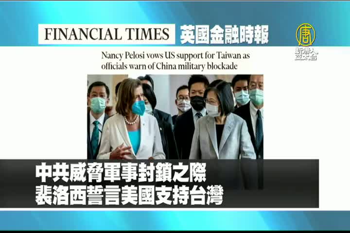 【新唐人亞太台 2022 年 08 月 04 日訊】接著是英國金融時報的報導:中共威脅對台灣進行軍事封鎖之際,美國眾議院議長裴洛西誓言,美國支持台灣。