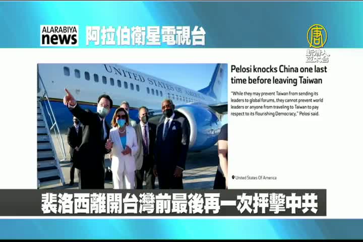 【新唐人亞太台 2022 年 08 月 04 日訊】來看到阿拉伯衛星電視台報導:美國眾議院議長裴洛西周三離開台灣結束訪行前,對中共進行了再一次抨擊,稱北京無權阻止「任何人」訪問該地。