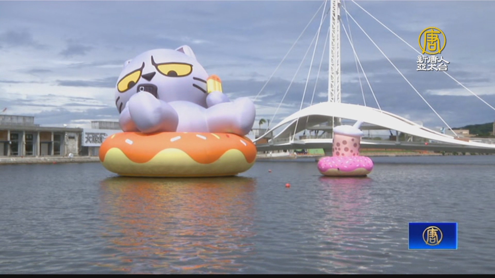 愜意的漂在水面上,旁邊擺一杯手搖飲,身為壓軸登場的「貓爪抓」,已經現身真愛碼頭旁,人氣不輸給前面幾位同學,不少民眾看準人少的時段,趕快來合照。