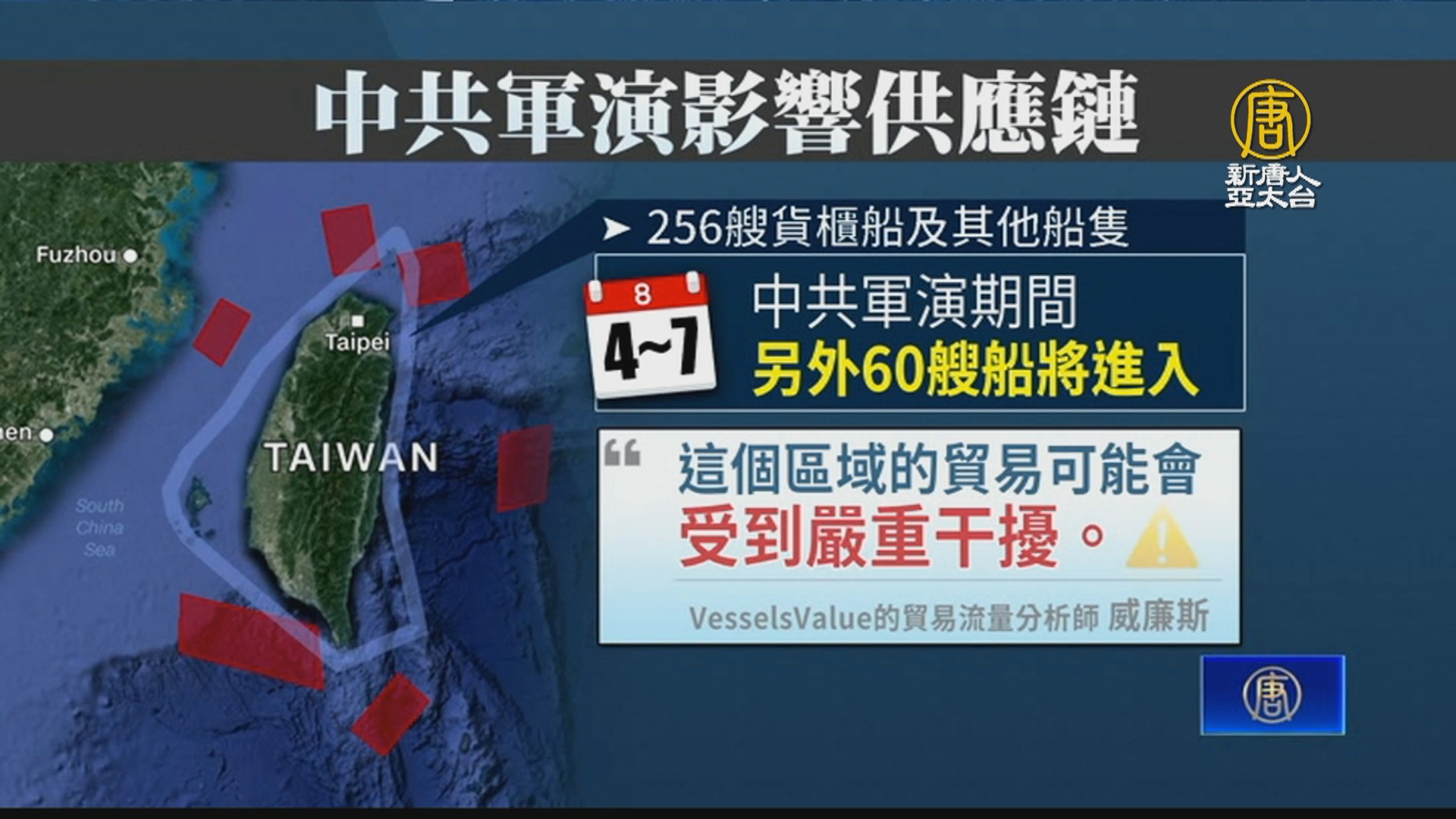 【新唐人亞太台 2022 年 08 月 05 日訊】美國媒體報導,中共在台灣周圍實彈軍演,讓已經吃緊的全球供應鏈,承受更多壓力。