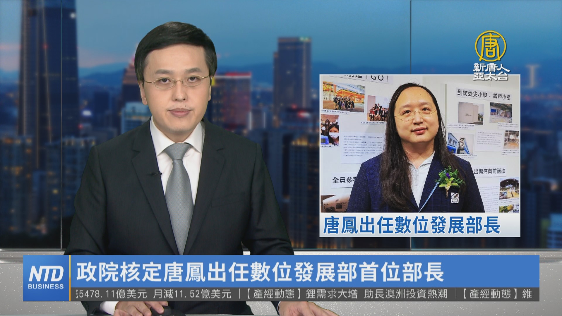 【新唐人亞太台 2022 年 08 月 05 日訊】行政院籌備多時的數位發展部,正副首長人事底定,行政院長蘇貞昌近日核定,由政務委員唐鳳出任數位發展部第一位部長,至於數位部的兩位政務次長,則由一卡通董事長李懷仁和亞矽人資長闕河鳴擔任。