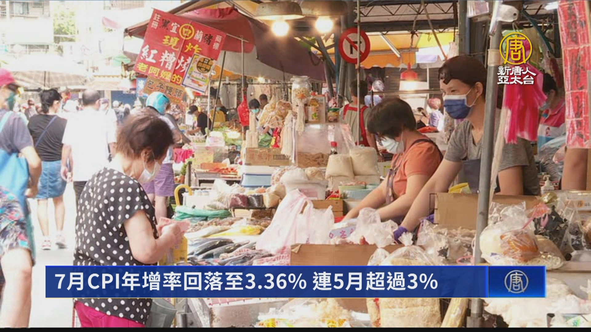 【新唐人亞太台 2022 年 08 月 05 日訊】主計總處今天公布7月消費者物價指數CPI,年增率為3.36%,雖然比6月有所回落,但還是連續5個月超過3%以上,顯示通膨壓力還是相當大。主計總處指出,扣除蔬果、能源後的核心CPI,年漲2.73%。值得注意的是,食物類價格漲了7.18%,主要來自蛋類、肉類飼養成本提高影響,蛋價就上升31%,水果也因為天候影響,漲價29%。