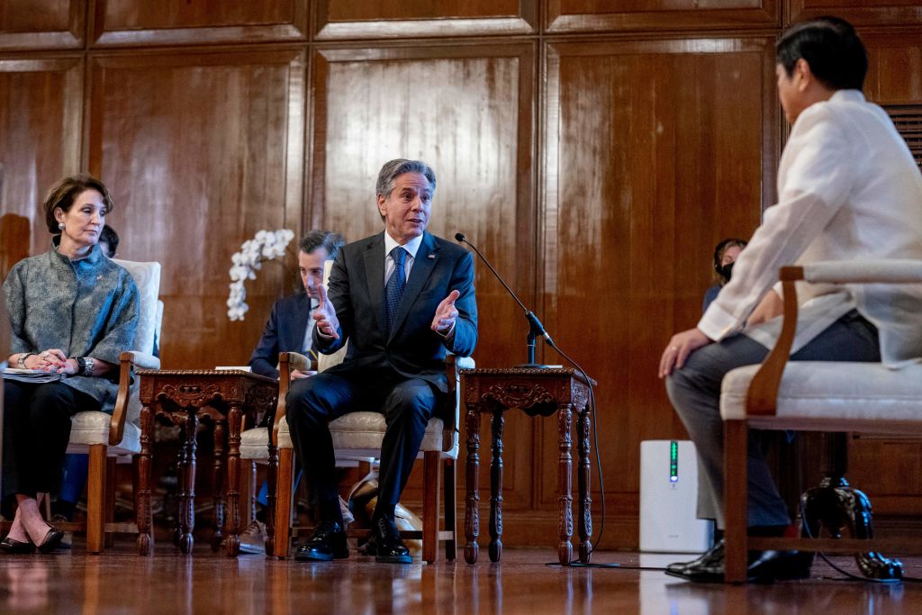 布林肯是與菲律賓新總統小馬可仕(Ferdinand Marcos Jr.)見過面的美國最高層級官員。小馬可仕的父親─已故強人馬可仕在1986年遭遇「人民力量」起義,結束長達20年的統治,並在華府協助下流亡夏威夷。