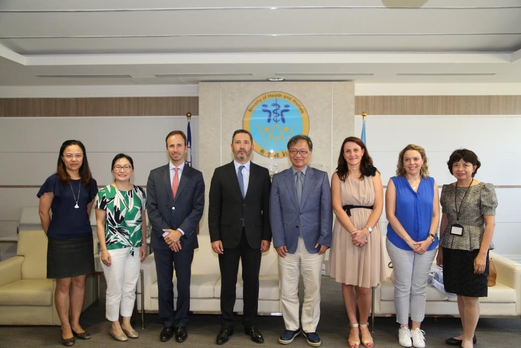 針對中共連日在台海發動軍事演習,葡萄牙國會民主社會黨友台議員奧利維拉日前在媒體呼籲中共停止對台灣挑釁,強調台灣民主需要國際支持。圖為奧利維拉(左4)等4名國會議員2019年7月訪問台灣衛福部。(圖/取自衛生福利部國際合作組網站)