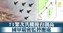 71架次共機擾台創高 國軍嚴密監控應處