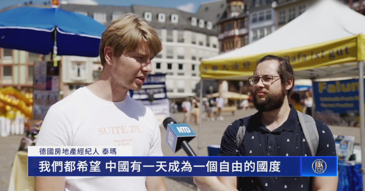 新唐人電視台記者 夏雲鈴 曹遠初 德國法蘭克福報導