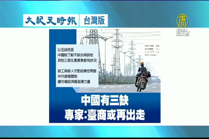 【新唐人亞太台 2022 年 08 月 18 日訊】來看到大紀元時報台灣版報導,中國有三缺,專家指出,台商或再出走。