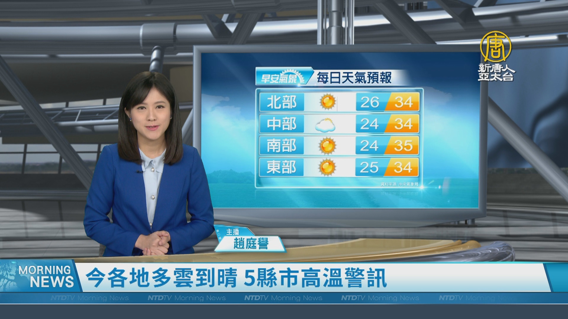 【新唐人亞太台 2022 年 08 月 19 日訊】歡迎您收看8月19日的早安新唐人,我是趙庭譽,先來帶您關心天氣。今天各地普遍為33度至35度,高屏地區及東半部都容易出現36度以上的高溫,尤其花東地區可能達到38°C極端高溫,外出務必要做好防曬並多補充水分。帶您一起來看到國際媒體重要訊息。