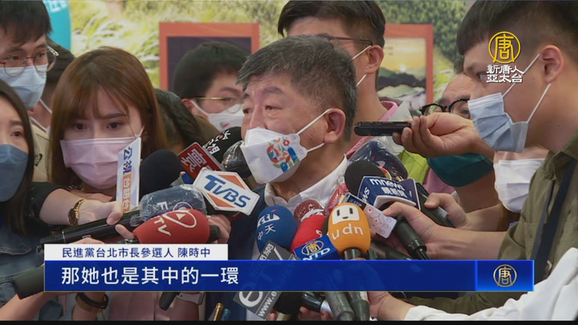 民進黨台北市長參選人 陳時中:「(記者:黃珊珊還是認為3 +11破口說?)那她也是其中的一環,如果是這樣子的話。整體的疫情,當然是人跟病毒的一個作戰,大家都是同一條船的人。」