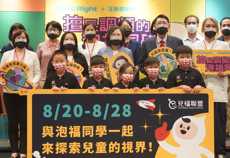 兒福聯盟設置「擅長調頻的泡福兒童 Kid’s Right互動體驗展」,明天起在松山文創園區展出,蔡總統今天出席開展儀式並致詞。