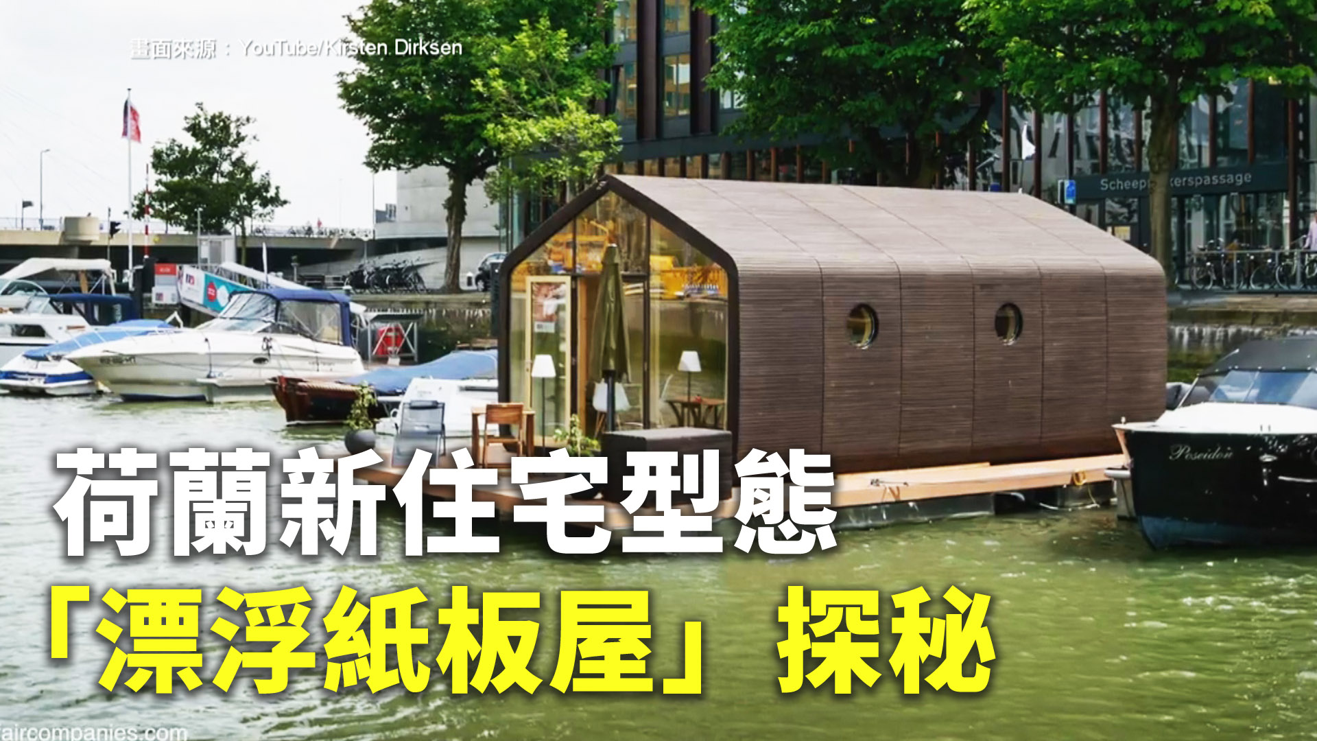 【新唐人亞太台 2022 年 08 月 20 日訊】據統計,全球海平面正以每年 1.9 公釐(mm)速度上升,地勢低漥的荷蘭第二大城市鹿特丹(Rotterdam)也面臨城市空間日益不足的問題。近年來,鹿特丹推出一種新型住房,可因應海平面上升的威脅,那就是紙板製成的微型浮動房屋。