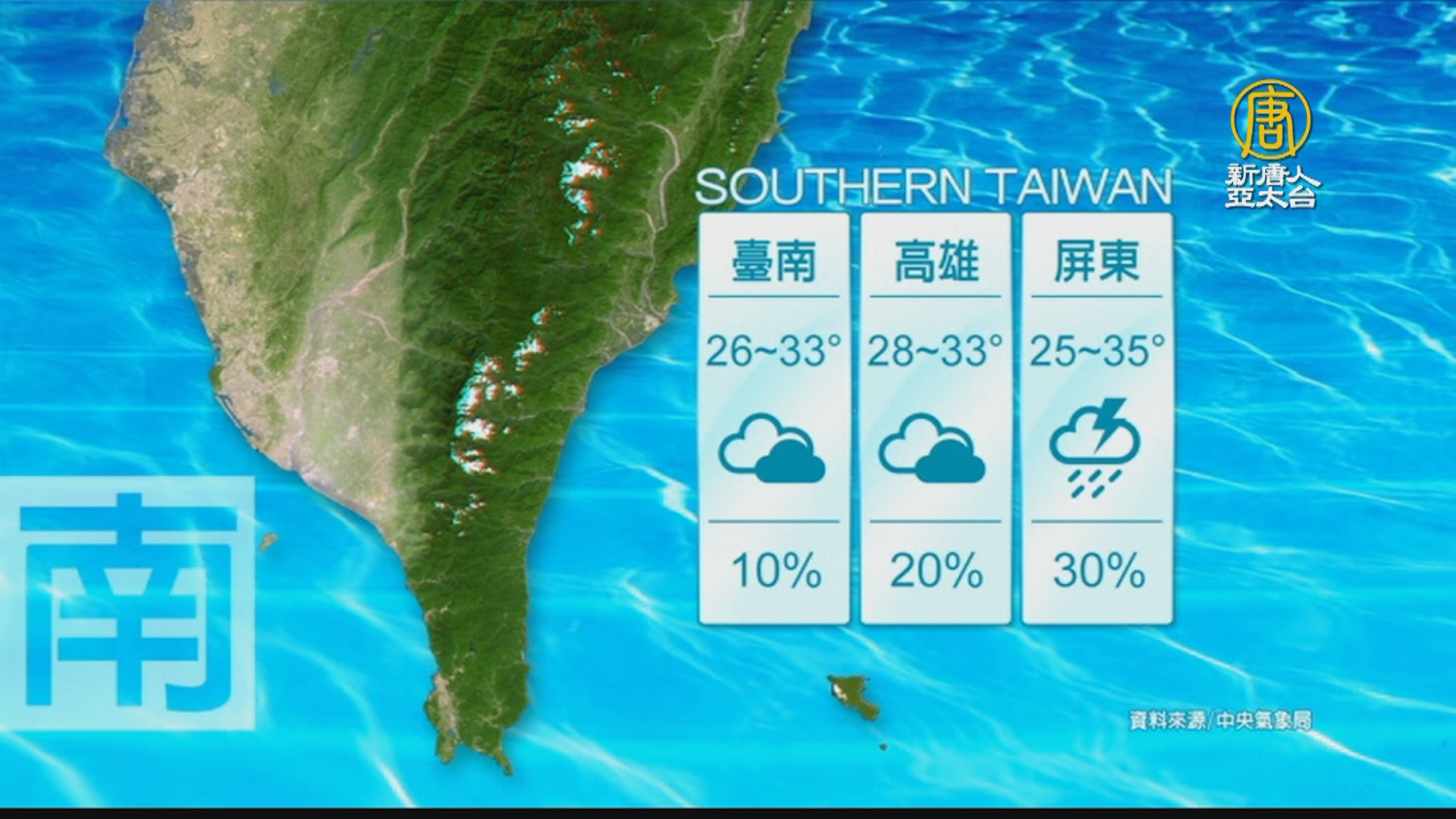 2022-12-12 08:13:36歡迎您收看12月12日的早安新唐人,我是唐潔安,先來帶您關心天氣。本週一波波更強冷空氣南下,觀眾朋友要持續多加衣物保暖,週三(14日),先是東北季風增強。週六(17日),入冬首波大陸冷氣團南下,中部以北低溫下探13度,預估週六,清晨北部三千公尺以上高山,有機會迎來初雪。帶您一起來看到國際媒體重要訊息。