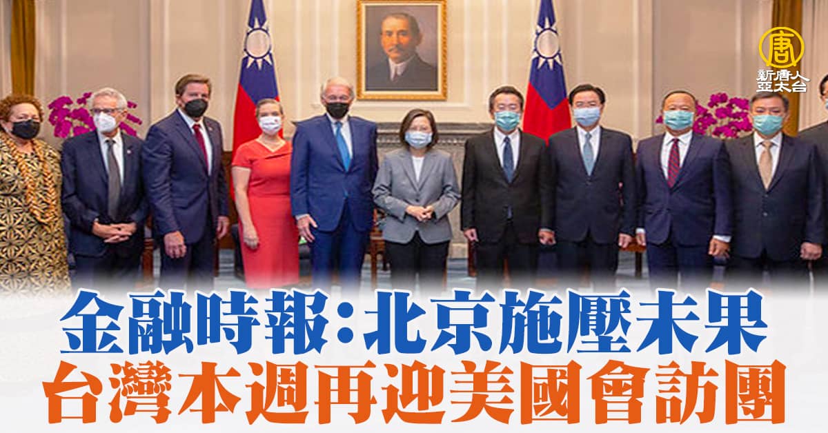 金融時報:北京施壓未果 台灣本週再迎美國會訪團