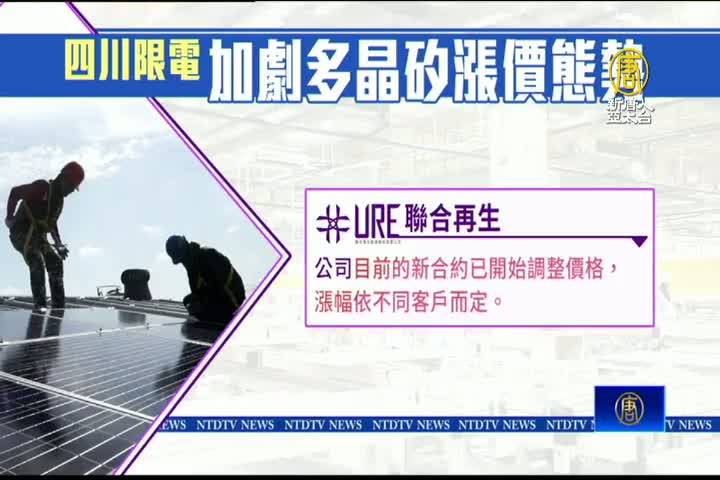 【新唐人亞太台 2022 年 08 月 22 日訊】身為太陽能多晶矽材料生產重鎮的四川,限電措施再度延長,加劇了多晶矽的漲價態勢,台灣廠商也緊急調整價格因應。