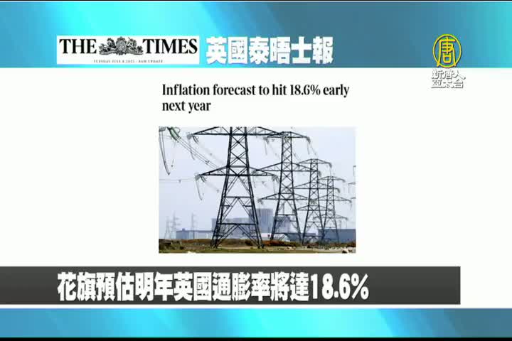 【新唐人亞太台 2022 年 08 月 23 日訊】接著是英國泰晤士報的報導:花旗預估明年英國通膨率將達到18.6%。