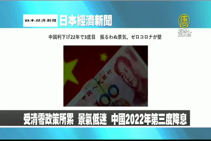 【新唐人亞太台 2022 年 08 月 23 日訊】來看到日本經濟新聞報導:中共強推「清零政策」導致經濟活動欲振乏力,景氣低迷。中國人民銀行宣布2022年第三度降息。