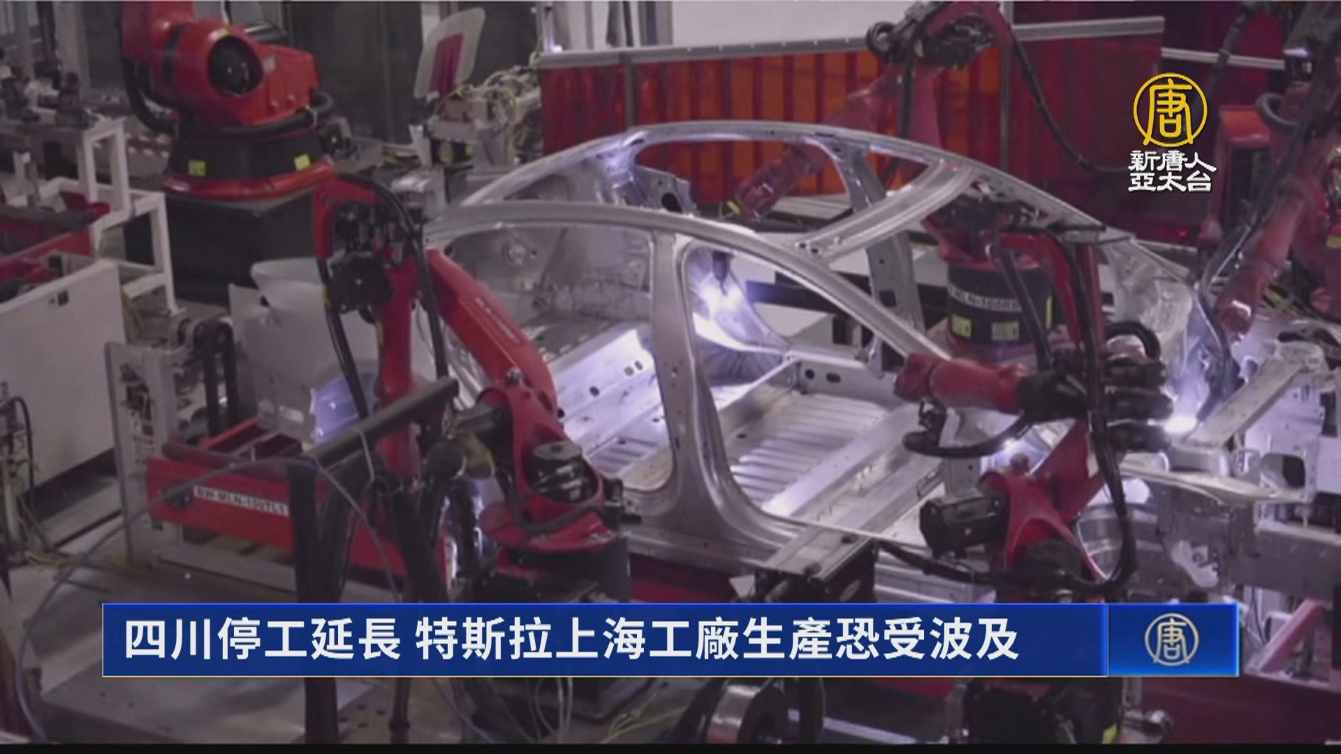 【新唐人亞太台 2022 年 08 月 23 日訊】四川省要求當地工廠延長停工到本周四(25日),特斯拉上海廠,因部分零件供應商位在四川,汽車生產同樣恐將受到波及。特斯拉上海工廠電動車生產除了供應中國國內市場之外,也出口至歐洲等國,有數據指出,數量約占特斯拉全球銷量的一半。今年3月上海實施封城,迫使特斯拉上海工廠暫時停工,如果四川的零件採購問題,再度干擾上海廠營運,特斯拉可能會重新思考全球策略。