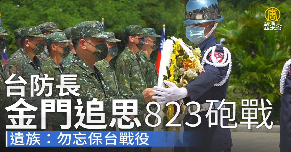 【新唐人亞太台 2022 年 08 月 23 日訊】今天(23日)是八二三砲戰64週年,國防部長邱國正帶著陸軍司令等人親赴金門主持祭典。日前,中共圍台軍演,飛彈恫嚇,讓前來參與的遺族家屬別有一番感受,特別感謝國軍保護中華民國。