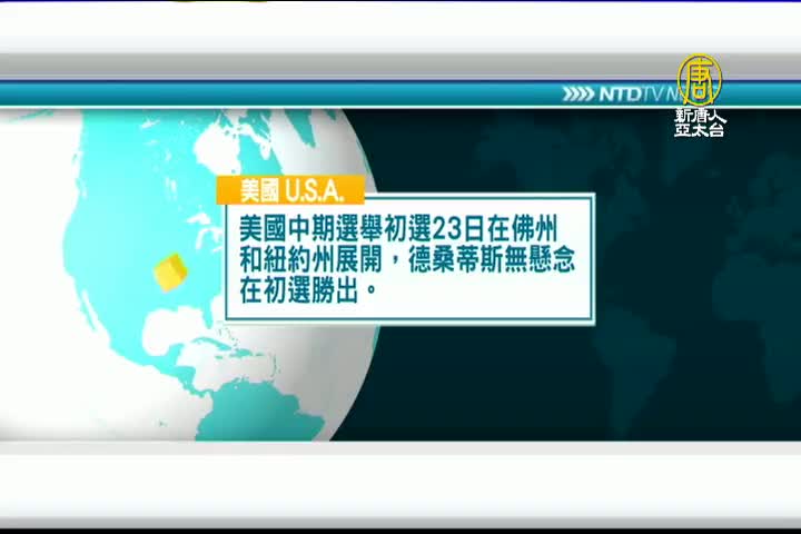 美國中期選舉初選23日在佛州和紐約州展開,德桑蒂斯無懸念在初選勝出。