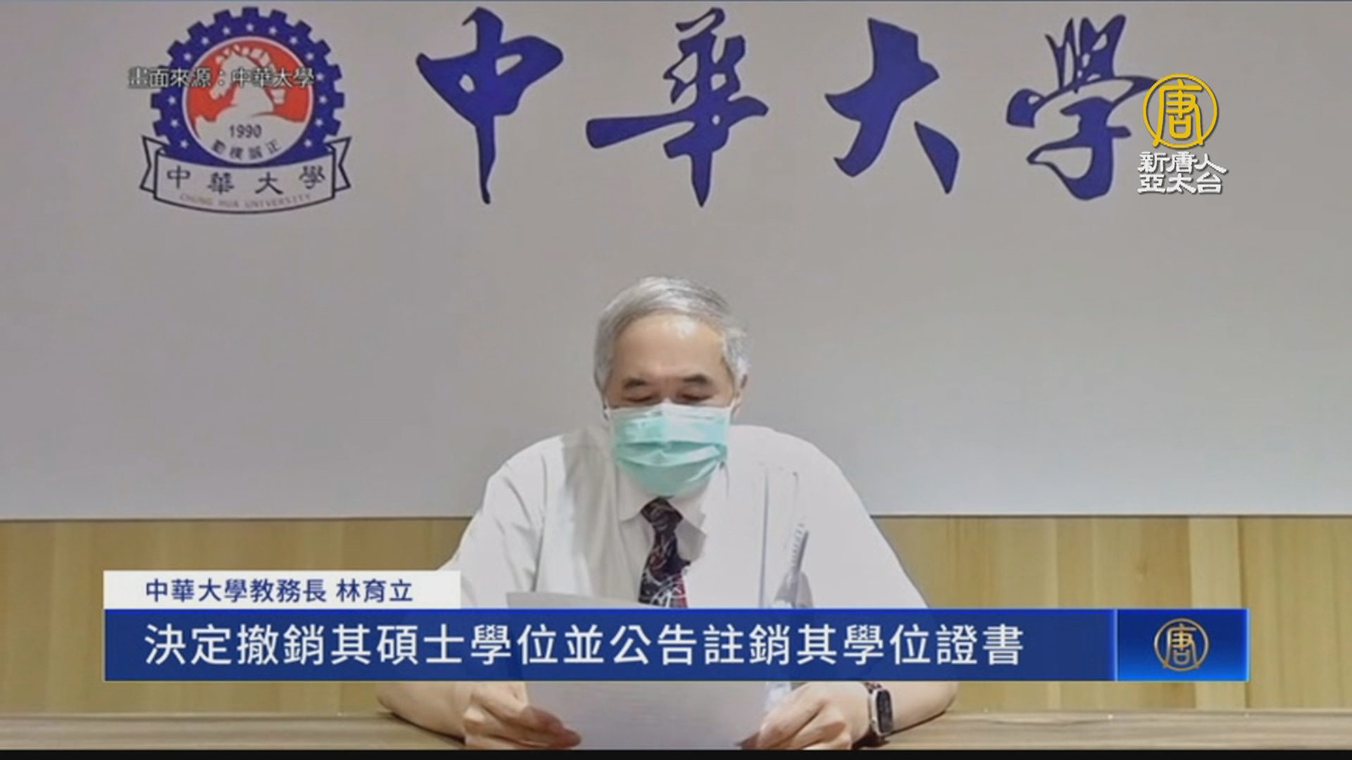 【新唐人亞太台 2022 年 08 月 24 日訊】前新竹市長林智堅,因論文抄襲風波而退出桃園市長選戰,繼先前被台大認定抄襲並撤銷碩士學位後。今天,中華大學校方也認定碩士論文抄襲,校長劉維琪聲明表示,在7月7號和8號,陸續接到具名信函,檢舉林智堅2008年的碩士學位論文抄襲。今天也認定林智堅的指導教授和口試委員涉及「明顯疏失」,將送教評會檢討。