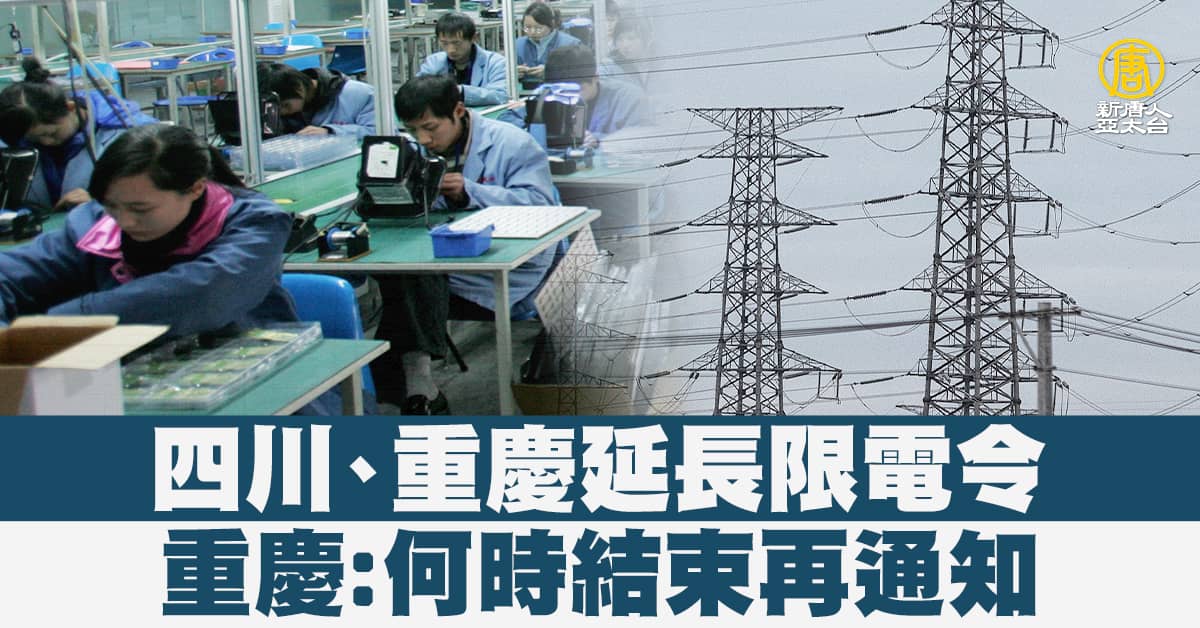 24號,中國重慶宣布,延長原本僅到24號的限電令,結束時間另行通知。目前,四川和重慶都延長限電令,為當地企業恢復生產帶來高度不確定,恐進一步衝擊供應鏈。