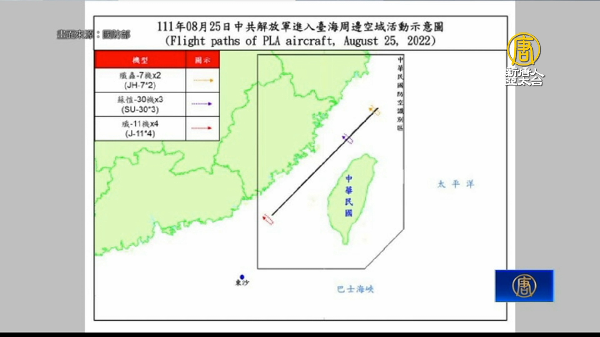 【新唐人亞太台 2022 年 08 月 25 日訊】再來關心,台灣行政院會今天通過112年度中央政府總預算案,歲出新台幣2兆7191億元,較111年度增加4680億元,約增20.8%;其中整體國防預算達5863億元,較今年增加716億元,成長13.9%。國防部(25日)表示,截至今天傍晚五點,偵獲共機15架次,共艦4艘次,其中逾越海峽中線的有9架次,國軍運用任務機、艦及岸置飛彈系統嚴密監控與應處。