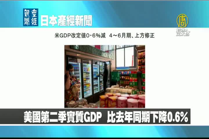 【新唐人亞太台 2022 年 08 月 26 日訊】來看到日本產經新聞報導:美國商務部公布4到6月實質GDP,比去年同期下降0.6%。