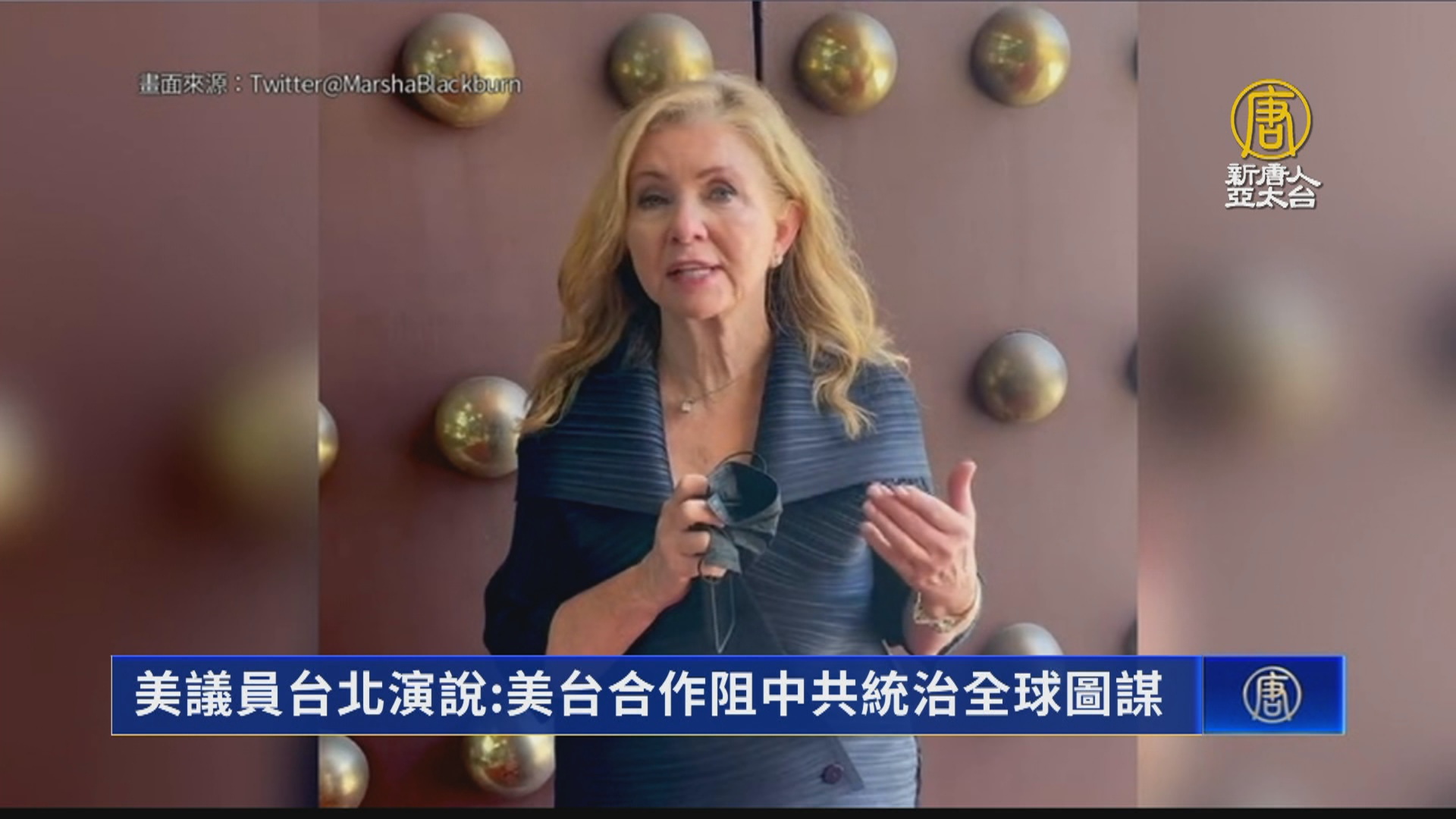 【新唐人亞太台 2022 年 08 月 26 日訊】歡迎回來。八月份第三波美國訪台議員,共和黨籍聯邦參議員布蕾波恩25日深夜抵達松山機場,今天早上與蔡英文總統會面後,下午在外交部發表專場演說。布蕾波恩指出,中共之所以對美台的夥伴關係的進展,感到緊張,是因為它們看到了,美國與台灣共同合作的決心,將阻止中共統治全球的企圖。