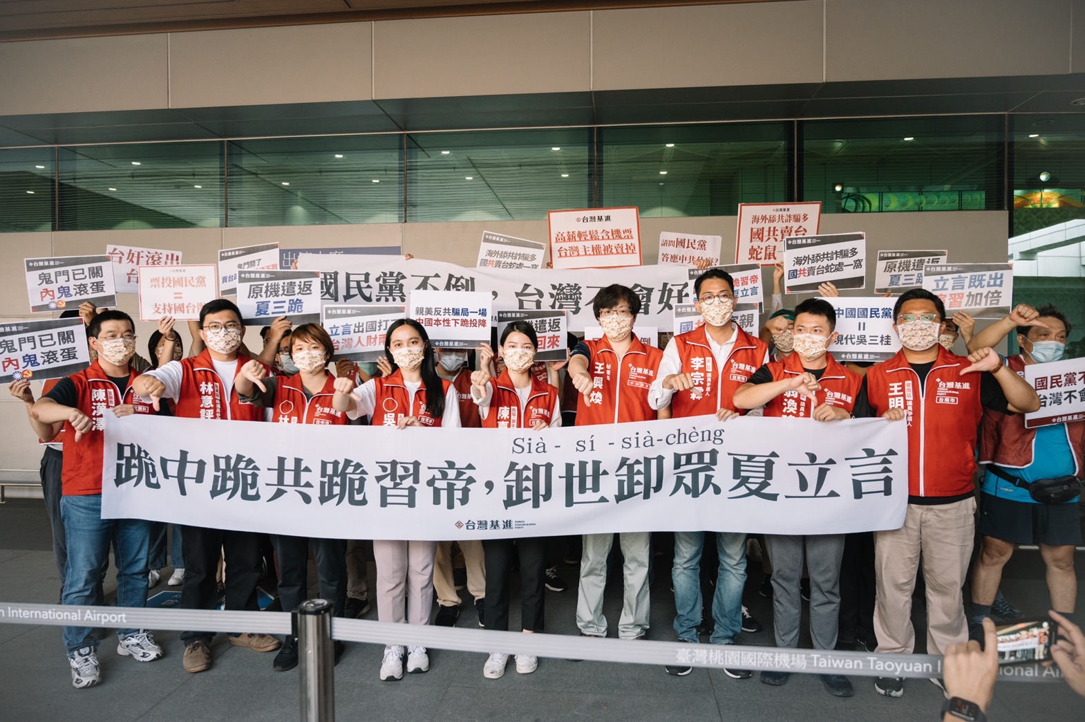 夏立言訪中返國 台灣基進機場抗議要求原機遣返