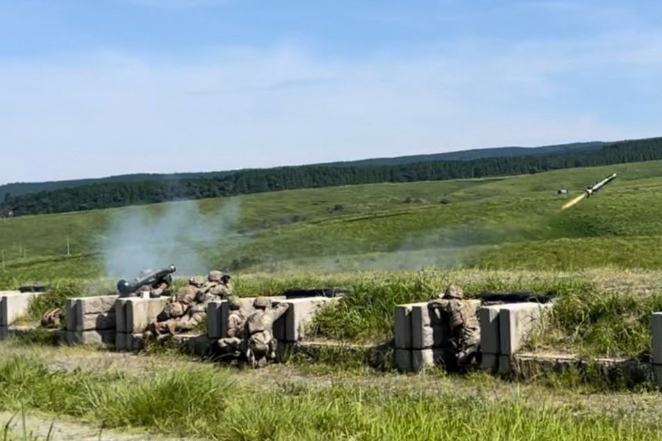 美國陸軍進行反裝甲飛彈「標槍飛彈」實彈射擊,這是美國陸軍的標槍飛彈首度在日本境內實施實彈射擊訓練。(圖/翻攝自推特@usarjcg)