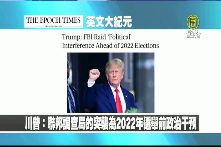 【新唐人亞太台 2022 年 08 月 29 日訊】首先來看到美國大紀元英文版報導:前美國總統川普指責聯邦調查局和司法部,在2022年中期選舉,甚至可能在2024年總統大選之前進行政治干預。