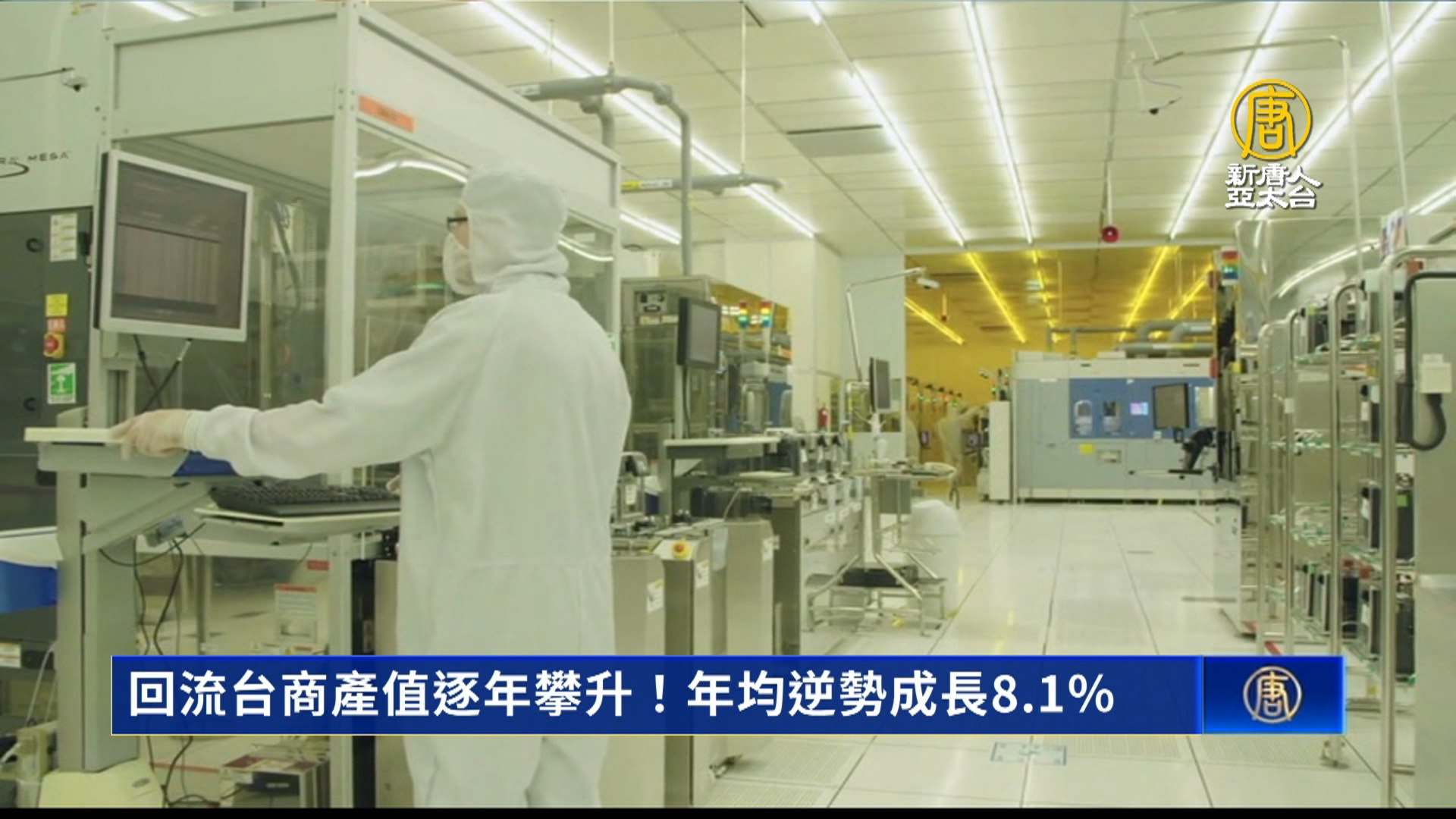 【新唐人亞太台 2022 年 08 月 29 日訊】受到美中貿易戰、疫情和政府推動的政策下,台商回台投資意願逐步增加。經濟部公布最新統計結果,截至8月初,台商回台投資方案總共有266家通過審核,投資金額大約為1兆727億元,其中,電子零組件業占5834億元最多。而由於台商陸續移轉部分產能回台,加上轉單效應等因素挹注,回台投資業者的產值逐年攀升,2019到2021年平均每年成長8.1%,產業附加價值率也逐年攀升。