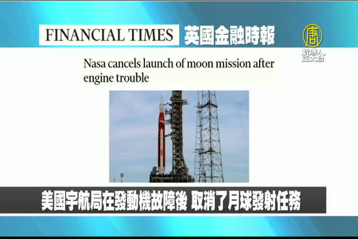 【新唐人亞太台 2022 年 08 月 30 日訊】接著是英國金融時報的報導:週一早上,在發動機冷卻系統最後一刻出現問題後,美國50年來第一枚能夠載人登月的火箭發射被推遲。