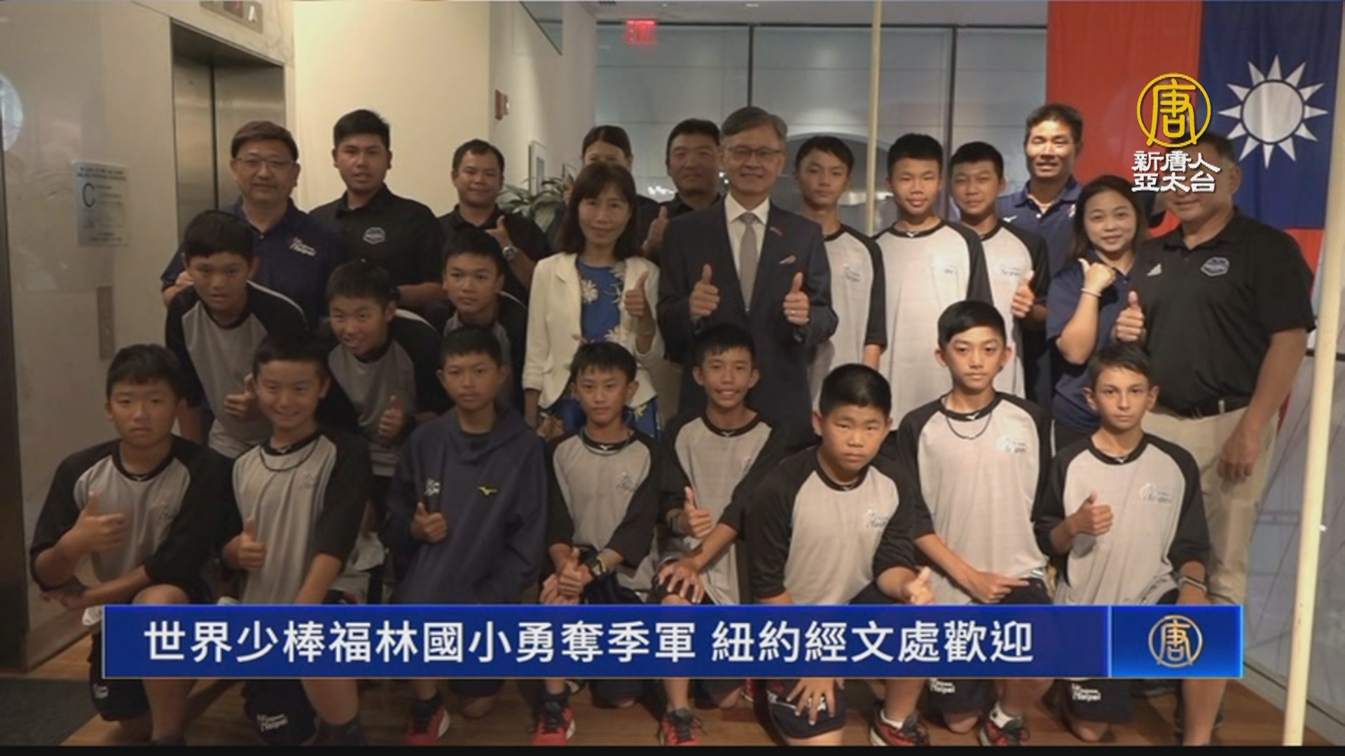 【新唐人亞太台 2022 年 08 月 30 日訊】「2022年世界少棒聯盟錦標賽」落幕,台北市「福林國小」少棒隊在季軍戰中,以2比0擊敗田納西隊,勇奪世界組季軍。少棒隊在週一,先後拜訪了紐約台灣會館,和紐約經文處,受到鄉親們的熱烈歡迎。