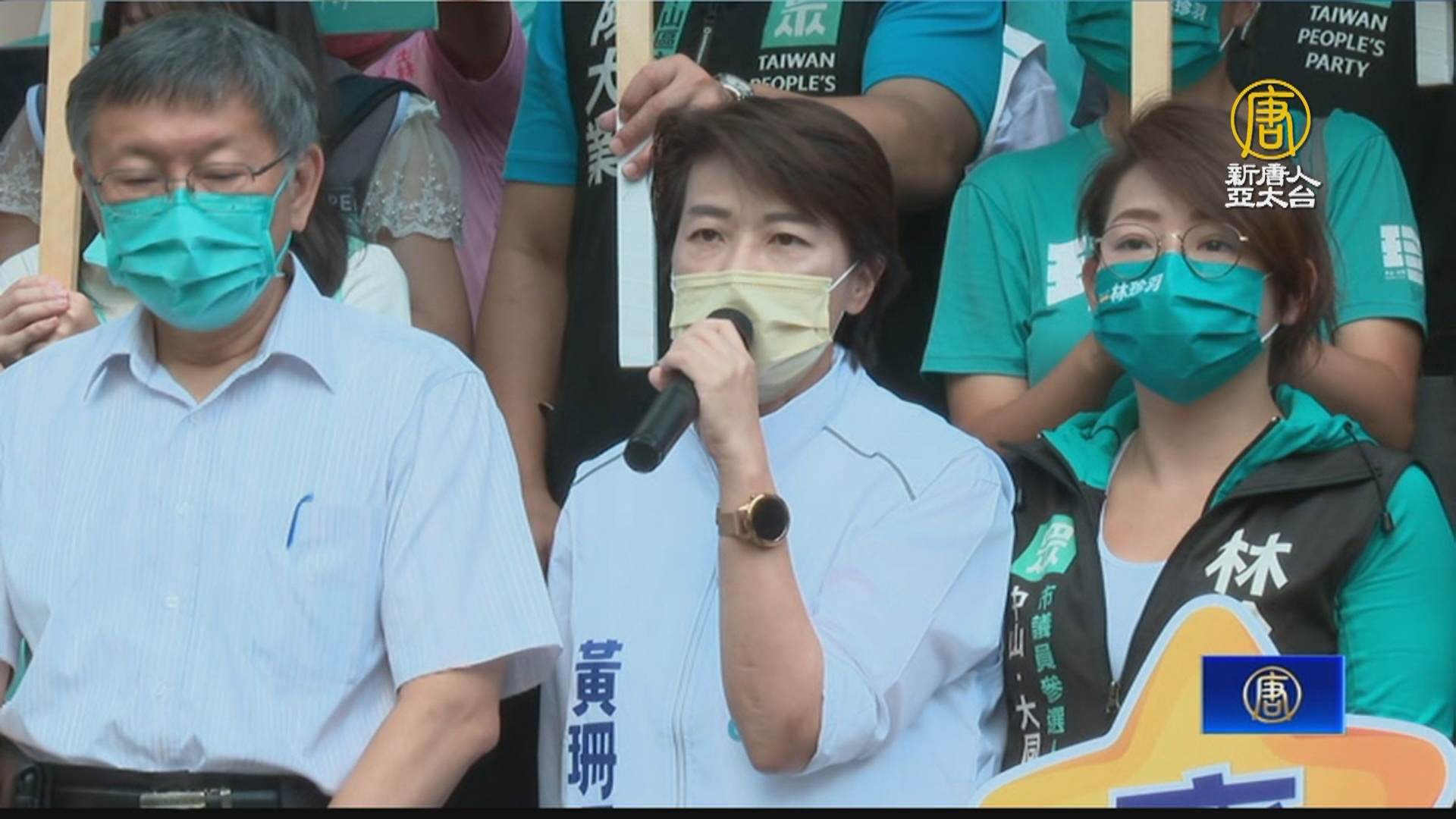 【新唐人亞太台 2022 年 08 月 31 日訊】陳時中登記參選一小時後,前台北市副市長黃珊珊,在民眾黨主席、台北市長柯文哲的陪同下前往登記,黃珊珊說,比賽正式開始,希望每禮拜都能來一場政見辯論,讓市民選擇最適合的人選。