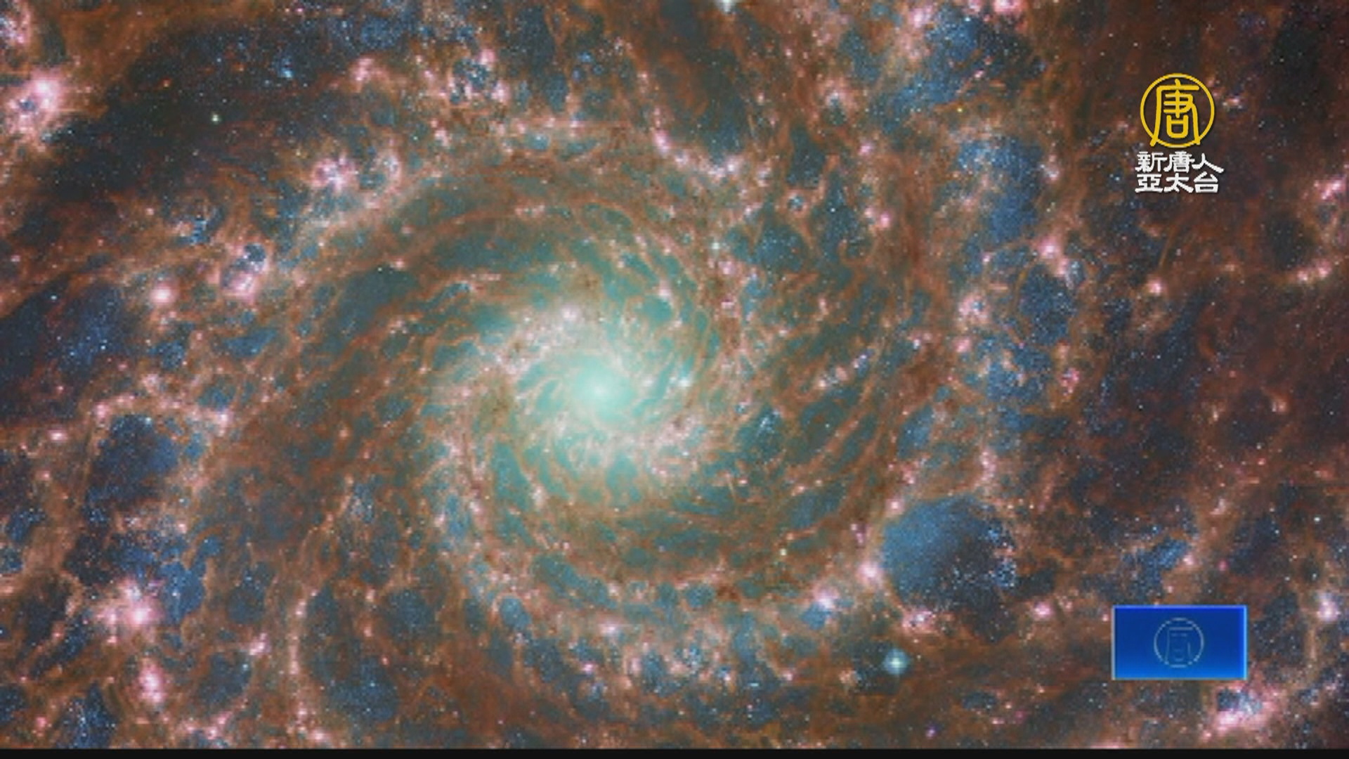 NASA週二公布的「幻影星系」(Phantom Galaxy)圖像,由哈勃望遠鏡和韋伯望遠鏡拍攝的照片結合而成,完整的呈現了這個壯觀的螺旋星系。由眾多星星組成的核星團清晰可見,粗壯的螺旋臂向兩側延伸擴展。