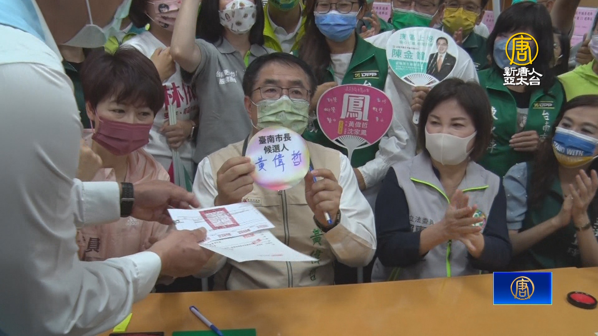 【新唐人亞太台 2022 年 08 月 31 日訊】台南市長黃偉哲今天(31日)帶領市議員參選人,一起前往選委會登記參選,爭取連任。台南市長選戰,在黃偉哲、國民黨謝龍介以外,可能還有多人角逐,包括無黨籍的許忠信和林義豐、以及建築師商毓芳。