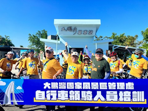 交通部觀光局大鵬灣國家風景區管理處推出兩天共16小時領騎人員訓練,共88位學員報名,處長許主龍(前排左四)親自參與領騎訓練,呼籲國人蒞臨大鵬灣用單車體驗在地美好!(圖/交通部觀光局大鵬灣國家風景區管理處)