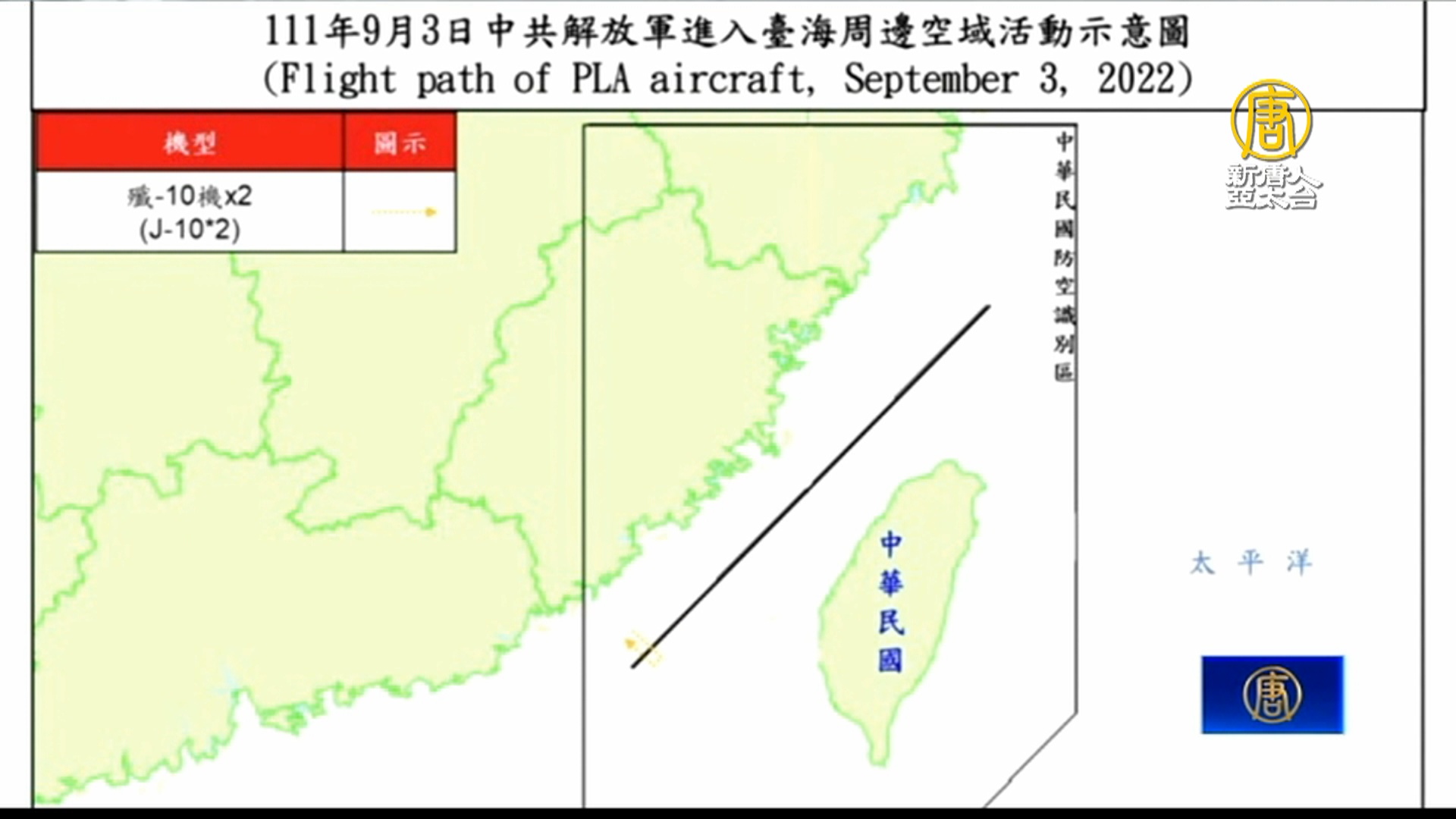 【新唐人亞太台 2022 年 09 月 03 日訊】颱風天,共機依舊來擾台,國防部今天(3日)表示,到傍晚5點為止,一共偵獲共機4架次,其中逾越台灣海峽中線2架次,另外還有共艦5艘次,持續在台灣周邊海空域活動。中華民國國軍運用任務機、艦及岸置飛彈系統嚴密監控與應處。