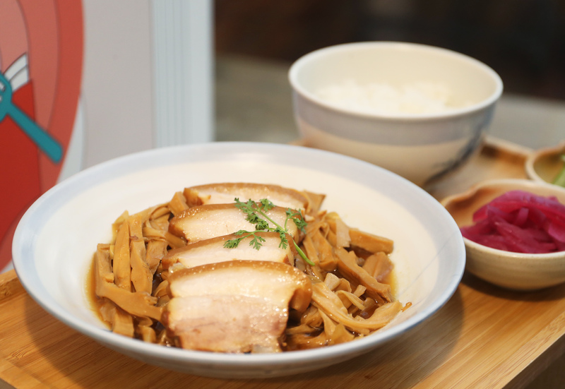 中央書局將於8日推出第3季作家料理,6日在台北舉辦記者會,邀請作家劉克襄設計風味料理「竹山鳳尾筍封肉」。(圖/中央社)