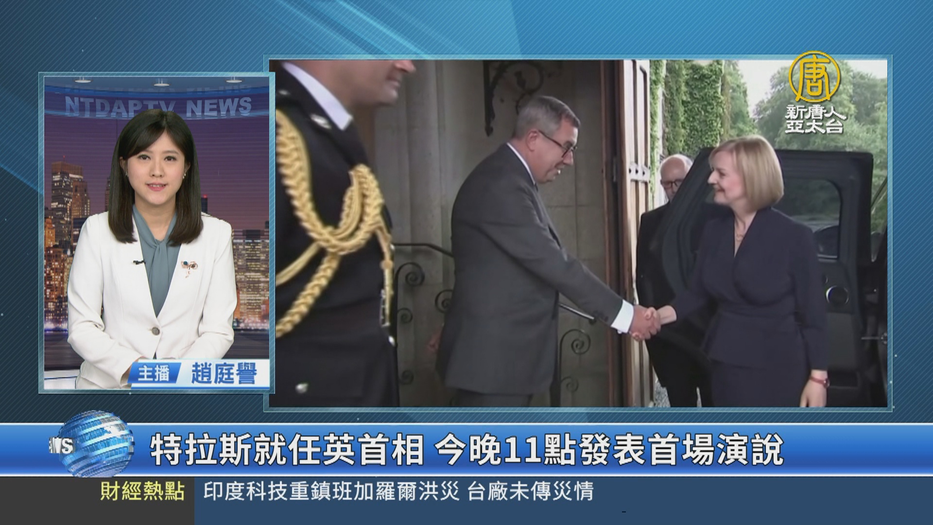 【新唐人亞太台 2022 年 09 月 06 日訊】國際焦點,來看到,就在台灣時間晚間七點多,英國保守黨新任黨魁特拉斯,在蘇格蘭巴爾莫勒爾堡會見英國女王伊莉莎白二世,並獲得女王任命,正式成為英國首相。這也是英國有史以來出現第三位女性首相。英國媒體報導,特拉斯將在台灣時間晚間11點,在唐寧街10號發表她就任首相之後的第一場演說。