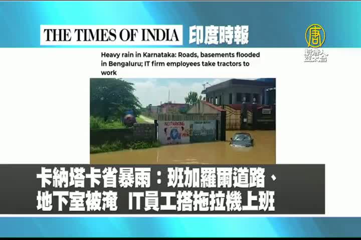 【新唐人亞太台 2022 年 09 月 07 日訊】最後是印度時報報導:印度卡納塔卡省暴雨,科技重鎮班加羅爾道路、地下室被淹,IT企業員工搭拖拉機上班。