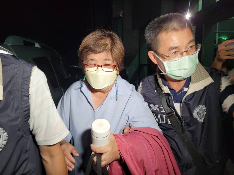 宜蘭縣羅東鎮長吳秋齡(右2)疑涉賄選,6日深夜遭法務部調查局宜蘭縣調查站約談後,被送往宜蘭地方檢察署接受複訊。(圖/中央社)