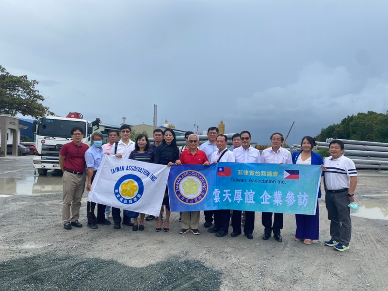 應菲律賓台商總會總會長李欣芬邀請,駐菲代表徐佩勇(圖前中)3日參訪在菲律賓製造電線桿的德欣企業。(圖/中央社)
