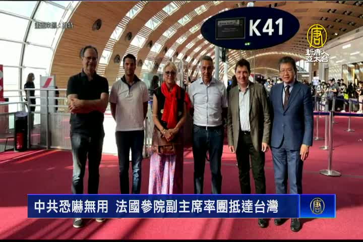 【新唐人亞太台 2022 年 09 月 07 日訊】中共升高台海緊張,國際以行動挺台,法國參議院歐洲事務委員會副主席貝勒發,7日至12日率跨黨派國會議員以外交泡泡方式訪台,今(7日)早抵台,這是繼裴洛西之後,再有歐洲大國訪台團抵達。這次訪團成員還包括,外交暨國防委員會副主席卡迪克、法制委員會副主席馬克、樂維及德維莎共5位跨黨派議員,議員也在推特上貼出中華民國旗,宣布來台行。訪團將會見副總統賴清德、立法院長游錫堃、監察院長陳菊等首長,並將參訪台灣的文經建設。這次是一年內法國國會第4度組團訪台。