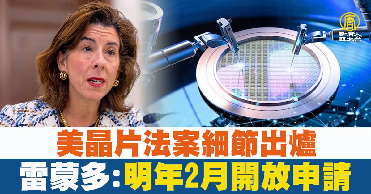 【新唐人亞太台 2022 年 09 月 07 日訊】美國商務部長雷蒙多6號出席白宮記者會,說明晶片法案500億美元資金分配。她表示,最晚在明年2月前,開始接受業者提出申請,可能在同年春季前開始撥款。