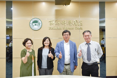 竹科管理局邀請新創公司分享成果。(左至右: 竹科管理局陳淑珠副局長,維致生醫楊維中執行長,竹科管理局王永壯局長,易達通科技林仕國董事長。)(竹科管理局提供)