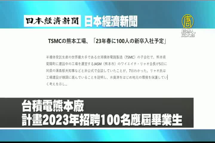 【新唐人亞太台 2022 年 09 月 08 日訊】來看到日本經濟新聞報導:台積電熊本廠計畫在2023年招聘100名應屆畢業生。