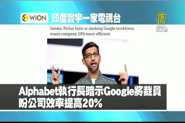 【新唐人亞太台 2022 年 09 月 08 日訊】最後是印度寰宇一家電視台報導:Alphabet執行長皮采暗示Google將裁員,盼公司效率提高20%。